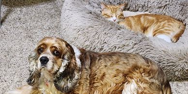We adore our pets. Bridgett is a 7-year-old rescue Cocker Spaniel and Copper is our 1-year-old cat. They are best friends, and you rarely find Angie without Bridgett at her side. We also have four granddogs and one grandcat that visit often.